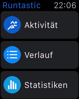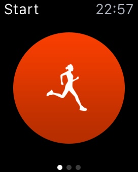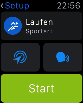 Ich öffne also die gewünschte App auf der Uhr und drücke dort auf den Startbutton. Die Uhr gibt das Kommando ans iPhone weiter, wo dann die App, mit GPS, gestartet wird.